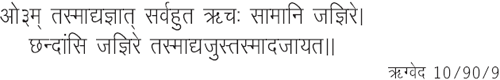 From that universally adorable Lord were produced Rig Veda and Saama Veda. From him the Atharva Veda took its birth and the Yajur Veda was produced by him.