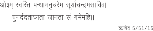 May we unswervingly follow the blessed path of welfare as do the sun and the moon. May we move in the society of the learned and the pious who are charitably disposed and non-violent in their deeds.