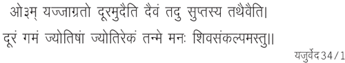 That mind of mine which is the light of lights, which in man's waking state as well as when he is asleep travels far and wide. May that mind of mine be of divine qualities and noble resolves.