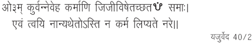 The man should desire to live in this world, doing always virtuous deeds, (without desire for reward) for a hundred years or more. This way and only this way, can he escape influence of vicious deeds.