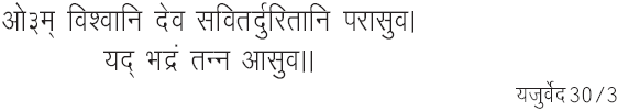 O God! You are giver of life, remover of pains and bestower of happiness. O Creator of the universe! we meditate upon thy most adorable supreme light. May you direct our intellect on to the righteous path.