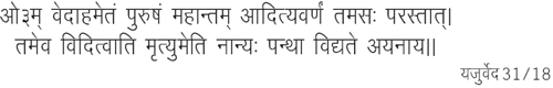 I know this Mighty Being, radiant as the sun, beyond the darkness of ignorance. By knowing him alone can one surpass the jaws of death. There is no other way for the achievement of the desired destination.