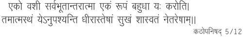The one supreme ruler, the universal soul within all beings, is the one who makes one form manifold. Eternal happiness belongs to those wise men, who perceive him within themselves, and not to others.