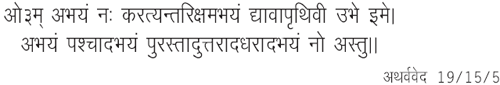 O Lord, may we be free from fear from mid-regions, brighter regions, and the earth. May we not entertain fear from any quarter front, behind, above or below.