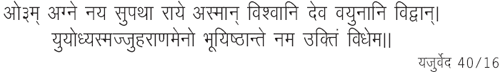 O self-illuminated Lord, cast out from us all what is debasing and sinful, and lead us by the path of righteousness to the attainment of true knowledge and wordly riches. We offer to you deep respect and praise.
